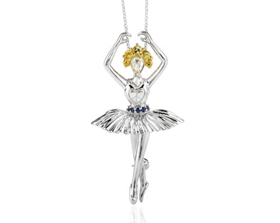 BDP 18k white gold Ballerina Dancer & Pin Pendant Dia 0.20ct, sapp 0.35ct.